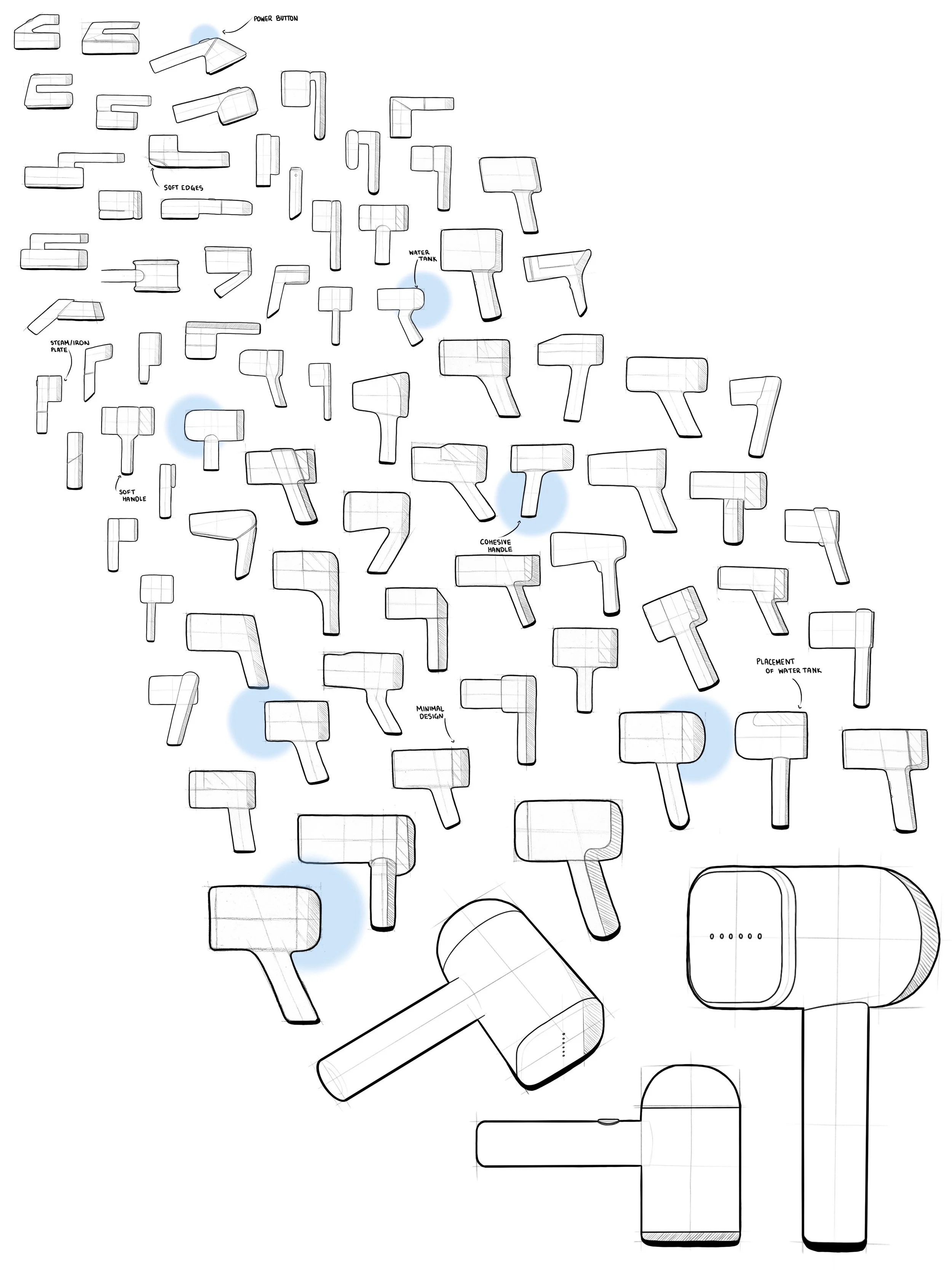 For my product design, I strived to set a minimalistic tone through simple colorways and forms. By following Conair’s brand direction to adapt to current trends, keeping the form minimal yet intentional was my goal.