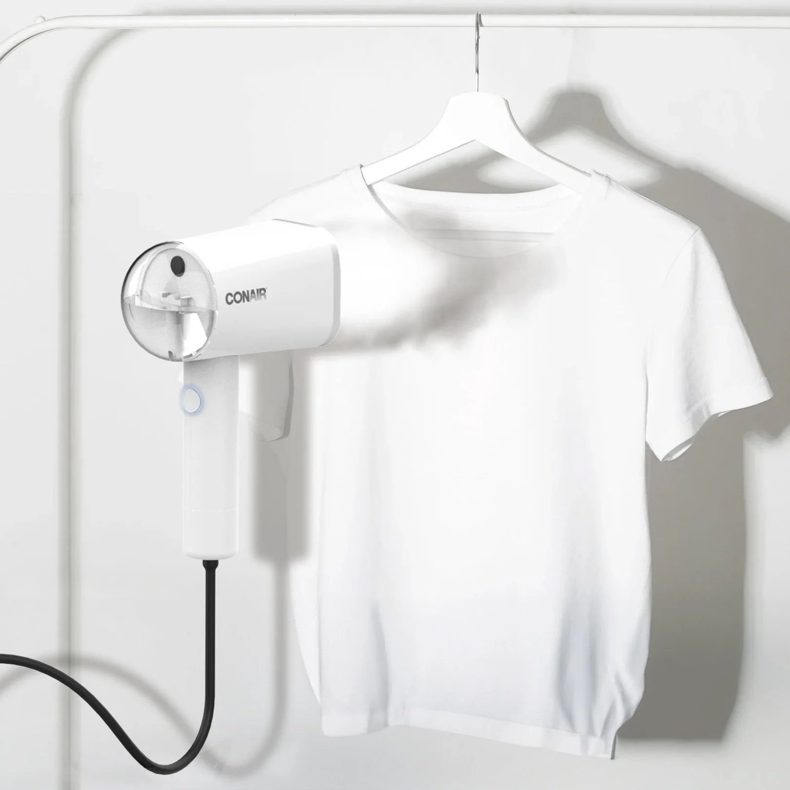 For on-the-go travelers, how can I design a versatile freshening device in response to a need for a multi-purpose portable steamer solution for the Conair brand?
