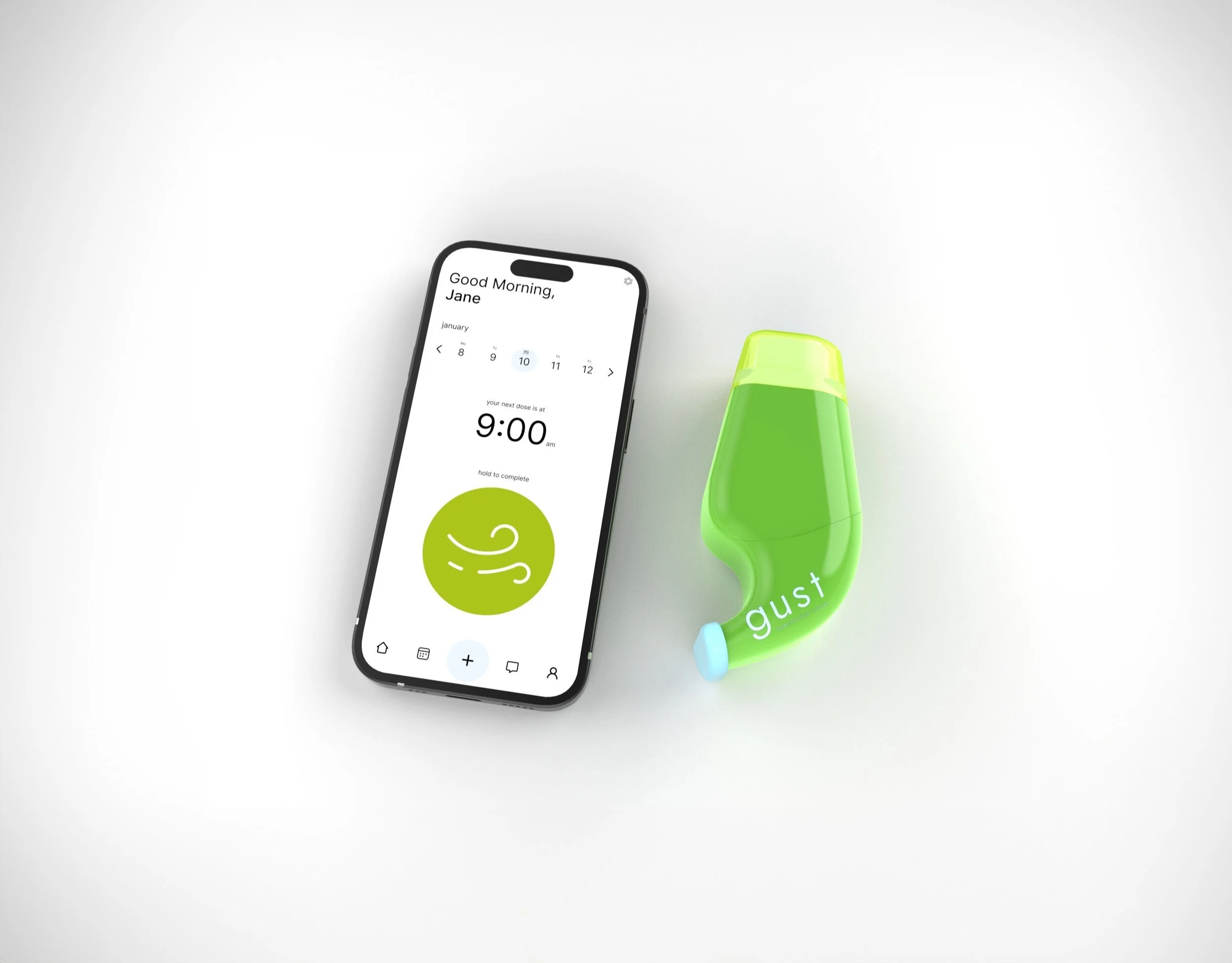Gust compels the user to tilt their chin back, opening airways and allowing medicine to reach the lungs.