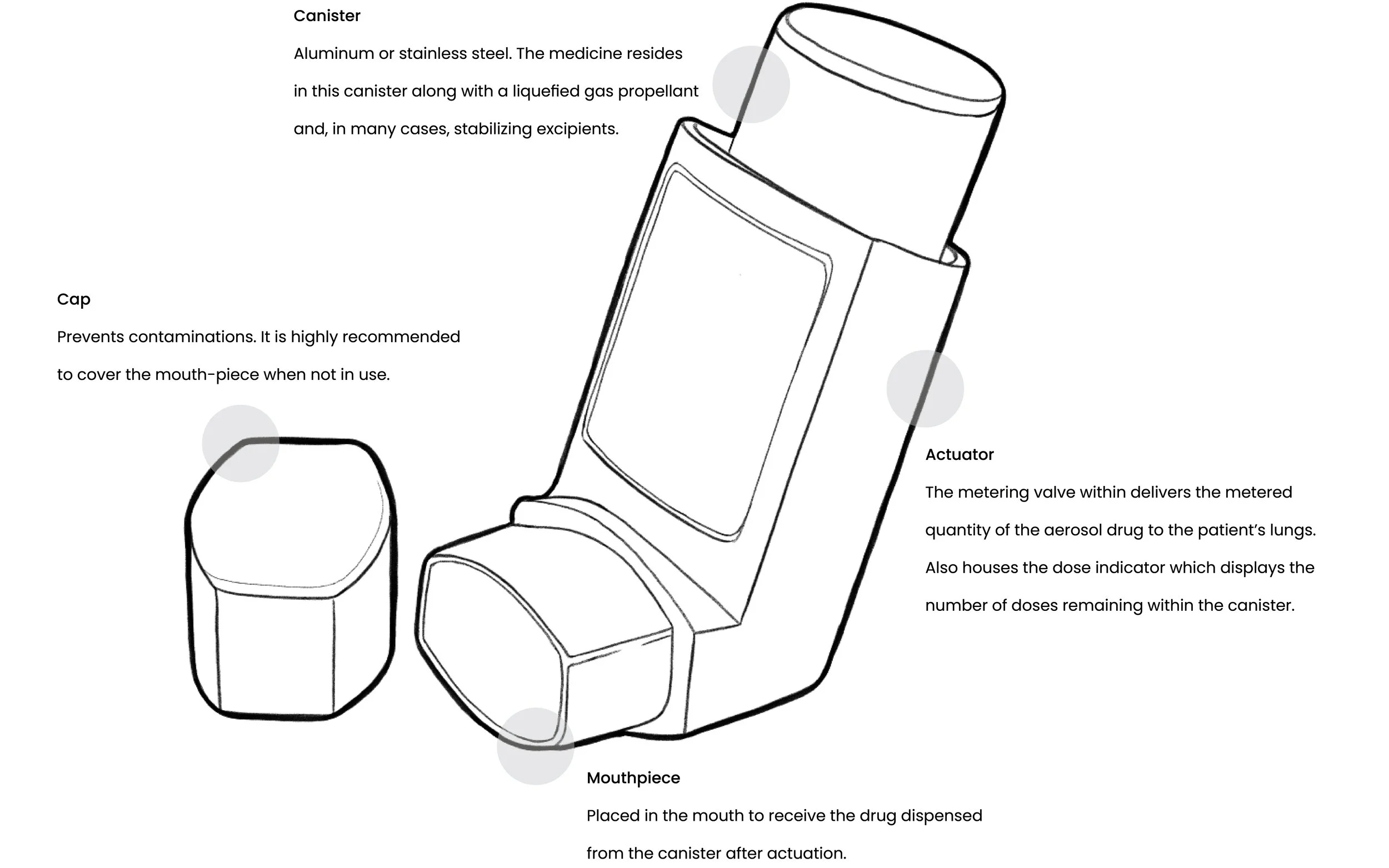 I first familiarized myself with the different components that make up a metered-dose inhaler (MDI).