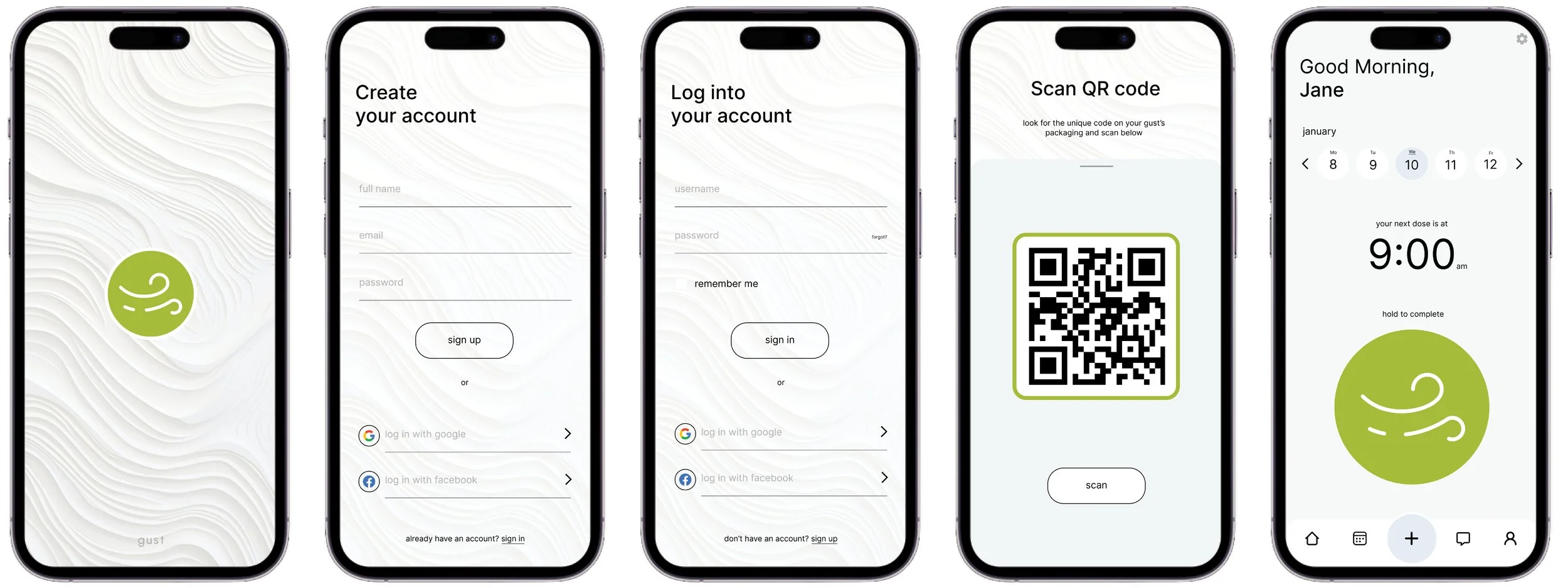 I then furthered brand and product development through creating an app interface that coincides with the Gust inhaler user experience.