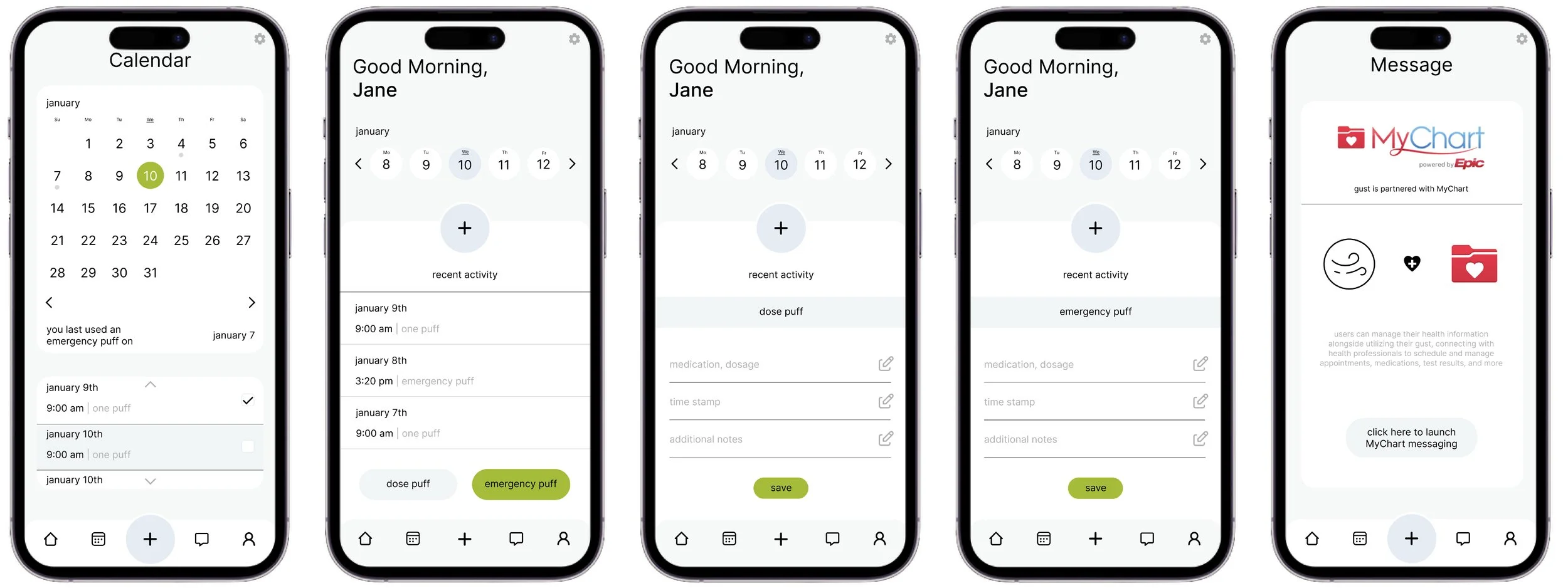 My exploration into UI design by developing an app that features tracking and documentation of Gust usage while also allowing the user to connect and relay information with a health professional.