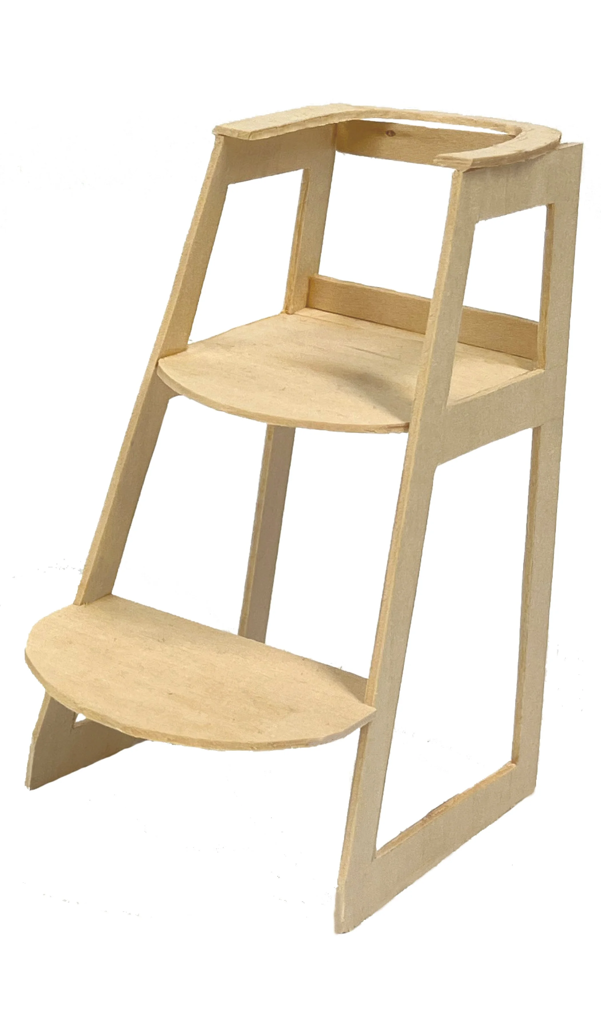 The fully functional end solution that showcases the different arrangements and capabilities. The sliding joinery is what supports the table in transforming into a step and the chair into a stool.