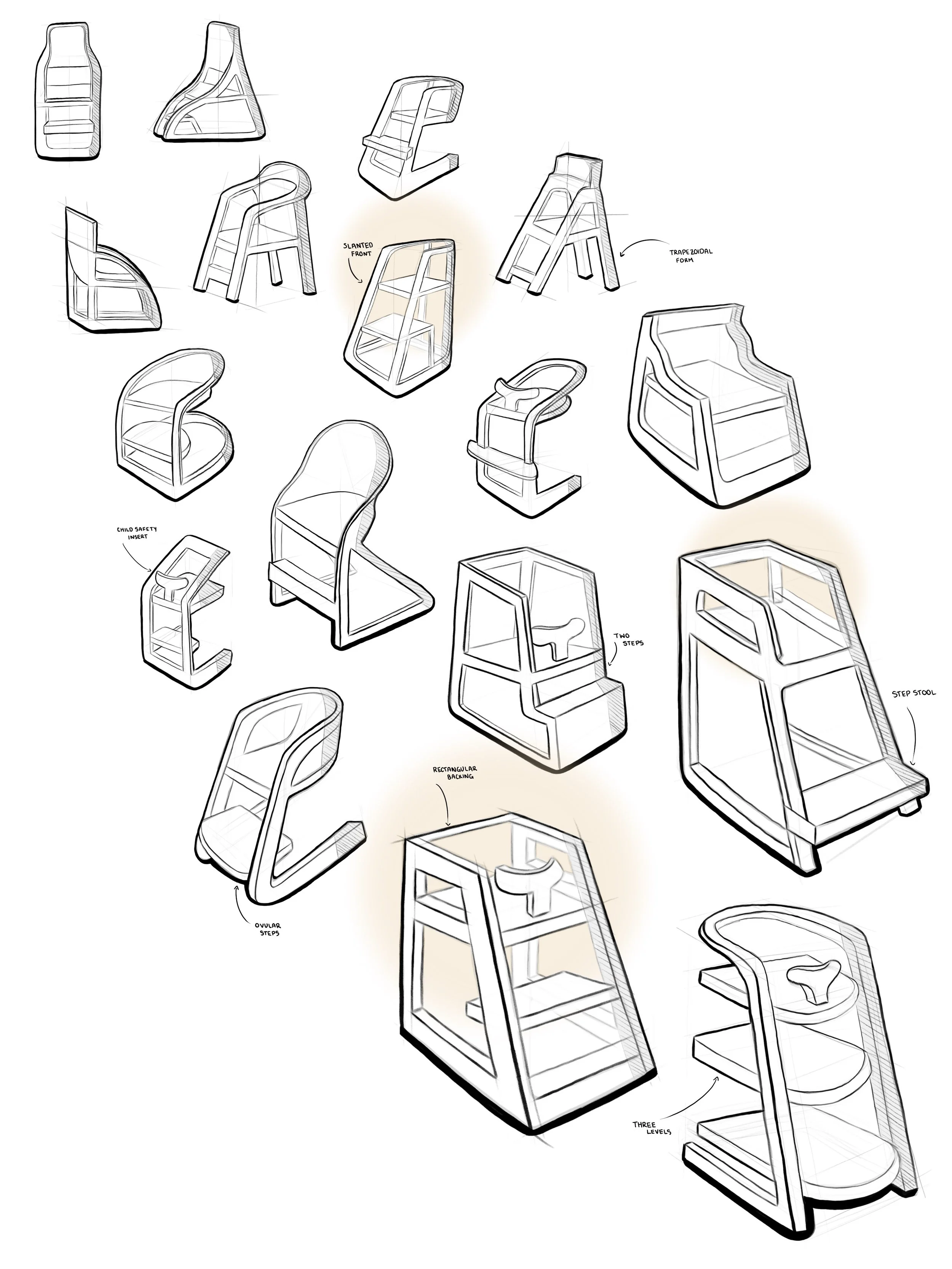My quick ideation of design directions where I focused on the general form and how it can be reflected in prototyped models and a fully functional end solution.
